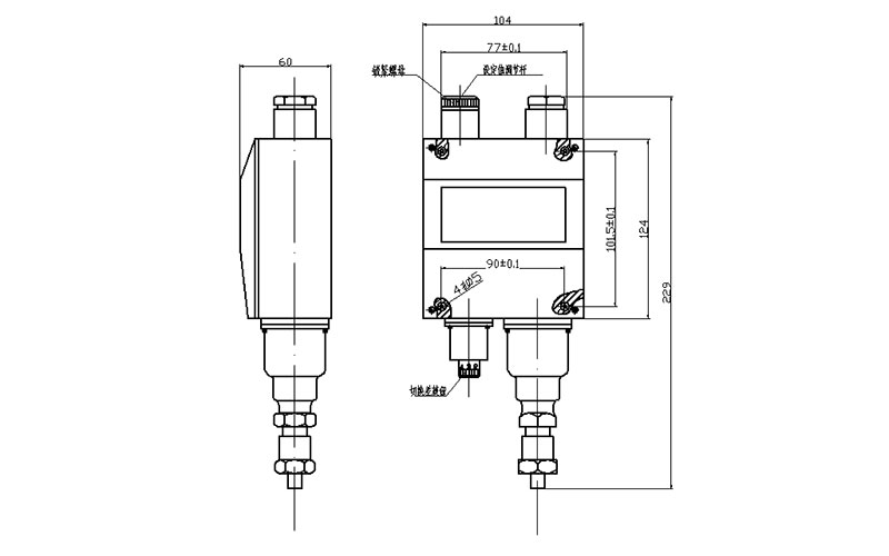 1. YWK-50-C船用壓力開關指針指示值為下切換值,設定值調(diào)節(jié)范圍即為下切換值調(diào)節(jié)范圍;