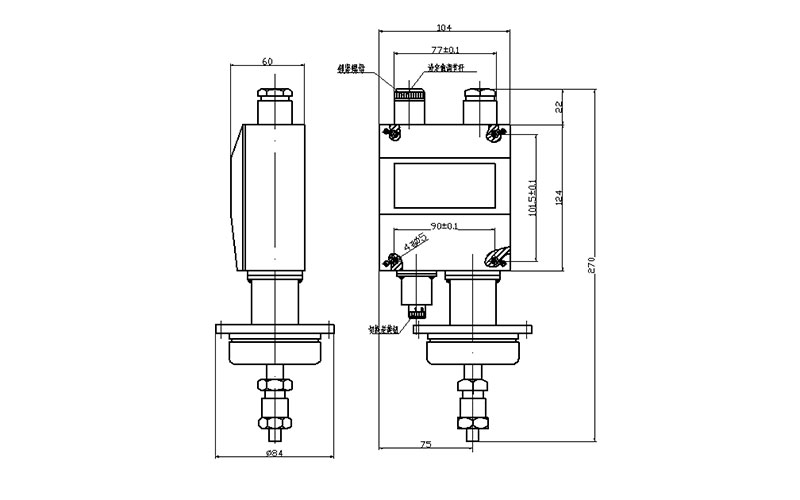 1. 將壓力開關的開關接線端子接入壓縮機電機的電源控制回路中(接1-3端子則降壓接通,升壓斷開)將被控氣體導入壓力開關波紋管室;