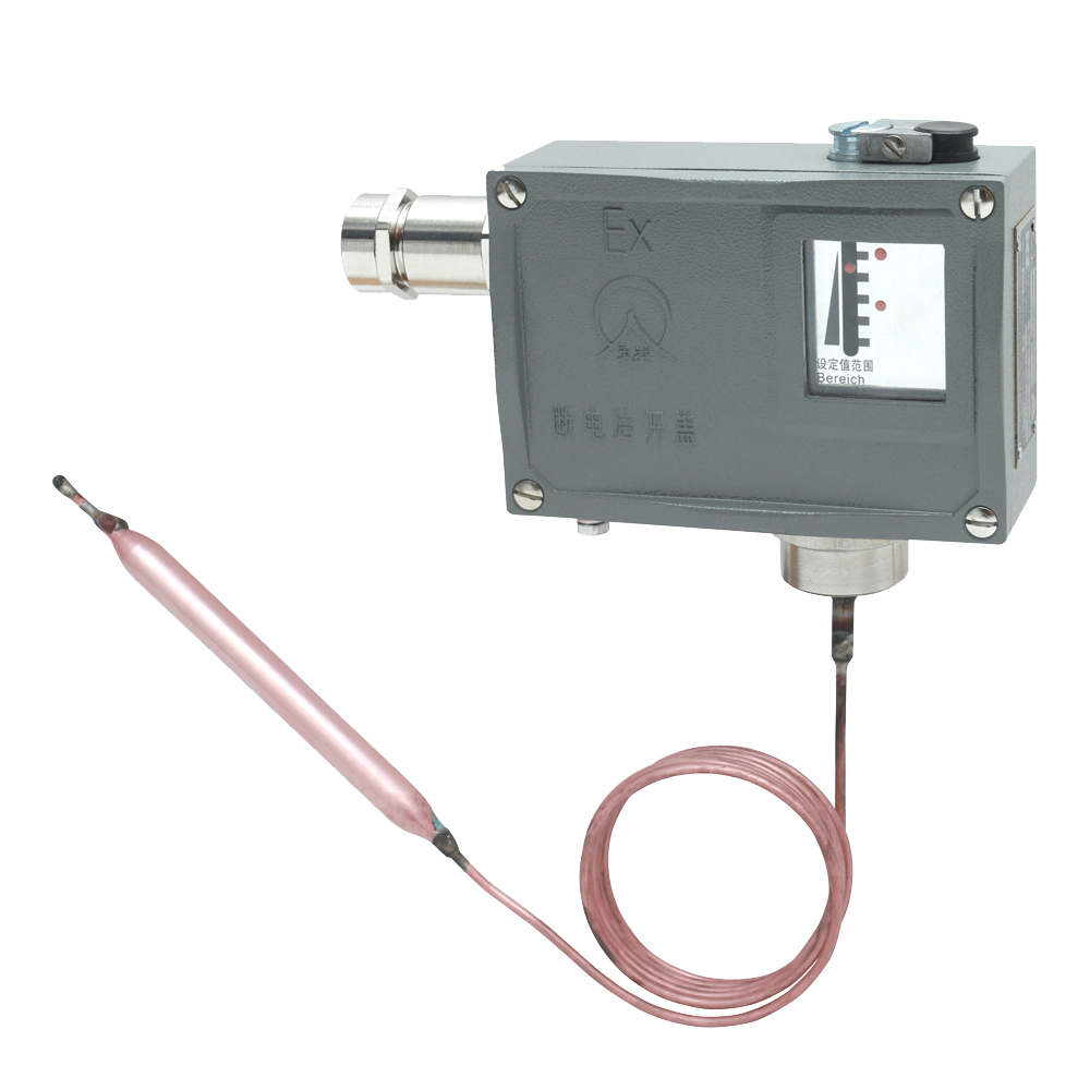 541/7T防爆溫度開關(guān)采用帶毛細(xì)管溫包式傳感器,可用于流動的中性氣體和液體介質(zhì),如果介質(zhì)為腐蝕性,安裝時可選用不銹鋼溫包保護(hù)套套在銅質(zhì)溫包外(見附件)。