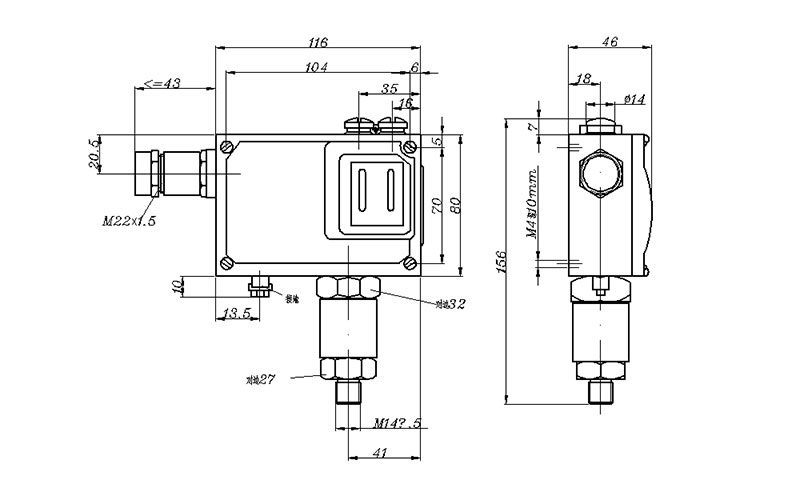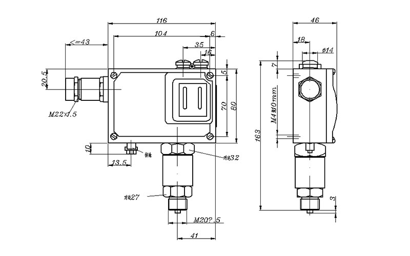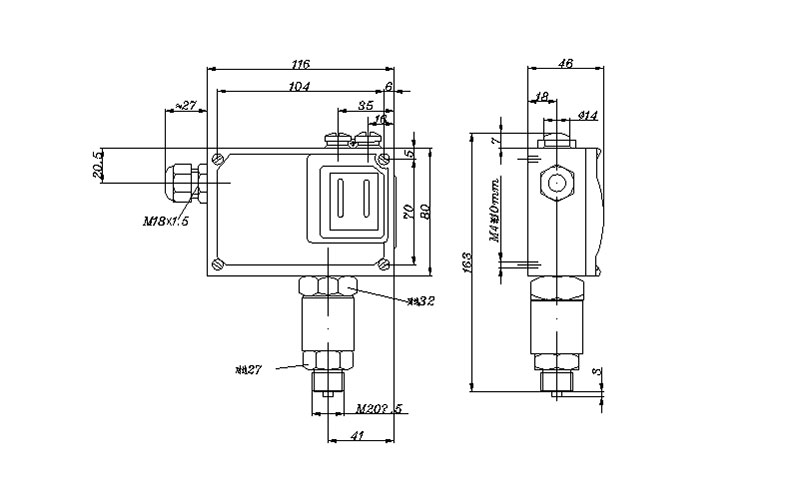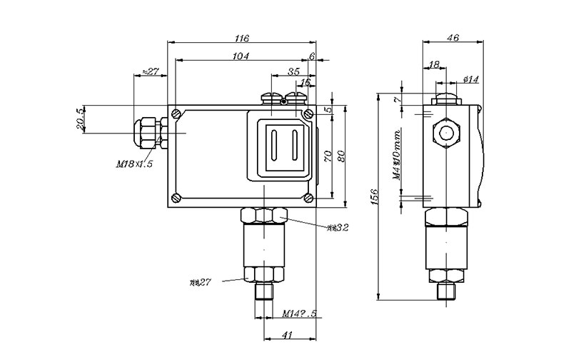 YTK-18H防爆壓力開關(guān)外形尺寸及安裝尺寸(單位:mm)