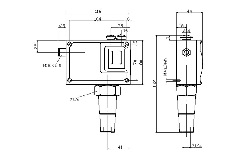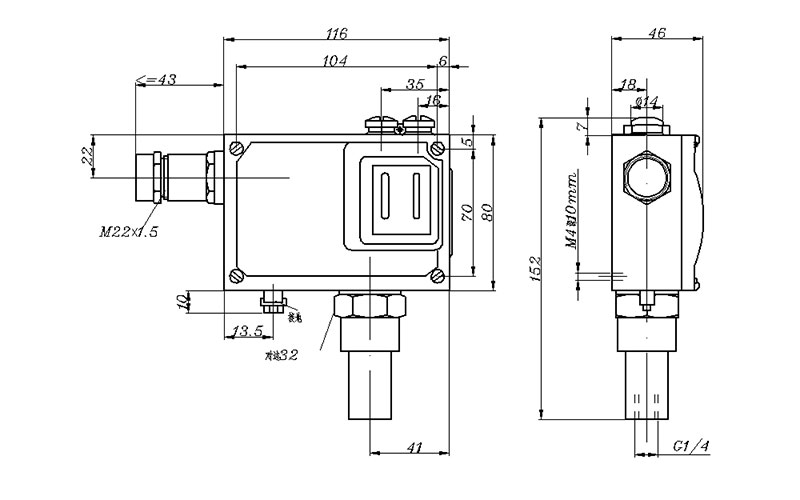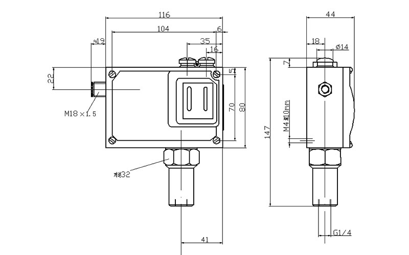 505/7D壓力開關(guān)外形尺寸及安裝尺寸(單位:mm)