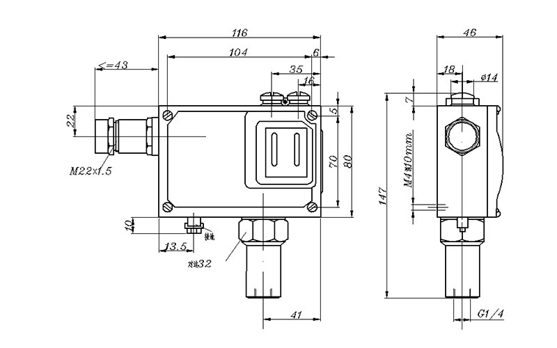 505/7D壓力開(kāi)關(guān)外形尺寸及安裝尺寸(單位:mm)
