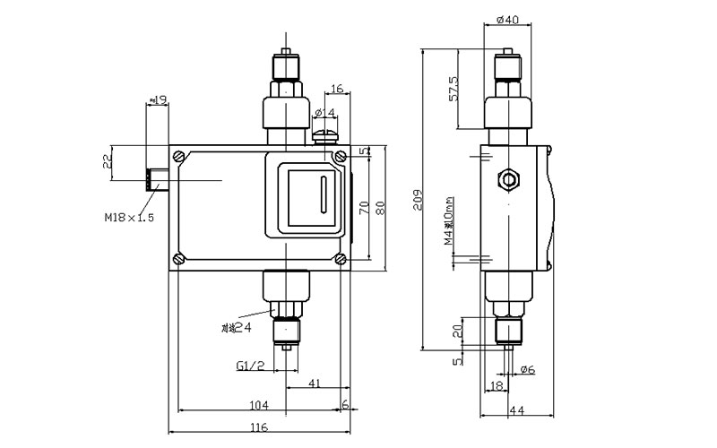 530/7DD差壓開關(guān)外形尺寸及安裝尺寸(單位:mm)
